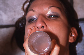Yeah we know, less squirting in her face and more right into her gaping mouth. Allie Steal quiets all of her critics with this mouthwatering performance. She shoves a clear acrylic tube down her throat so more than a dozen strangers can squat over her face to unleash a waterfall of ovarian nectar into her waiting mouth. Enjoy every drop as she makes an honest effort to keep both eyes open while these whore rain down on her.